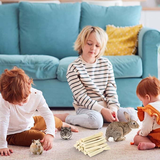 - Perfect Toothbrush - Sweet bamboo sticks helps your pet remove harmful tartar, erase halitosis by chewing the grinding sticks. The teething chew stick not only promotes dental and oral health, but also trims long teeth and prevents the pain caused by overgrowth. Great for your pets to kill boring time. Natural chinchillas treats, sweet bamboo sticks with proper hardness can help little pets grind down their teeth. It is a veterinary recommended teething toy for rodent pets.