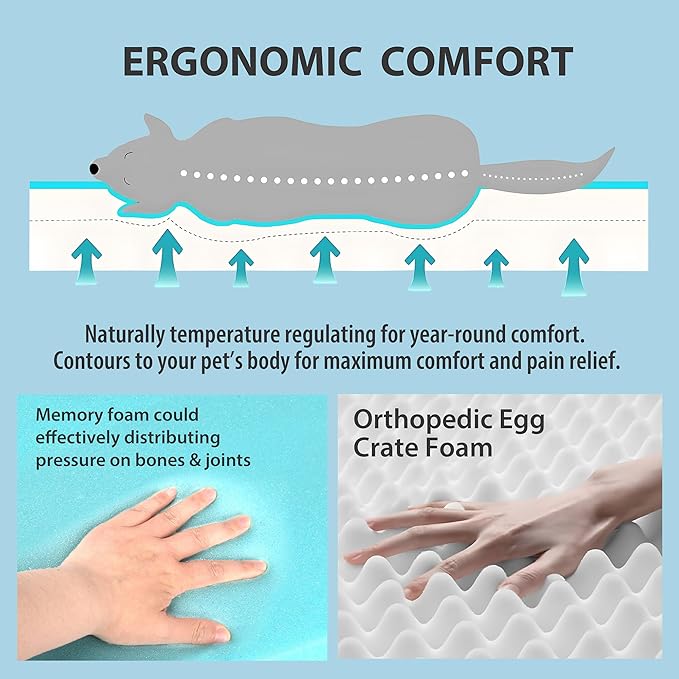- β Orthopedic Comfort - Designed to provide your pet with unparalleled support for a deep, dreamy night's sleep. The high-density memory foam evenly distributes weight and provides just the right amount of pressure relief.
