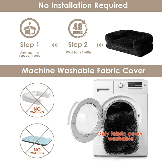- EASY TO REMOVE AND CLEAN: Human Giant Dog Bed requires no installation. Simply unwrap the vacuum bag and wait for it to unfold. Please pat and shake it before use until it is completely fluffy. The faux fur cover can be washed in the washing machine at a low temperature. The bolster filling is not washable and should be removed before washing.