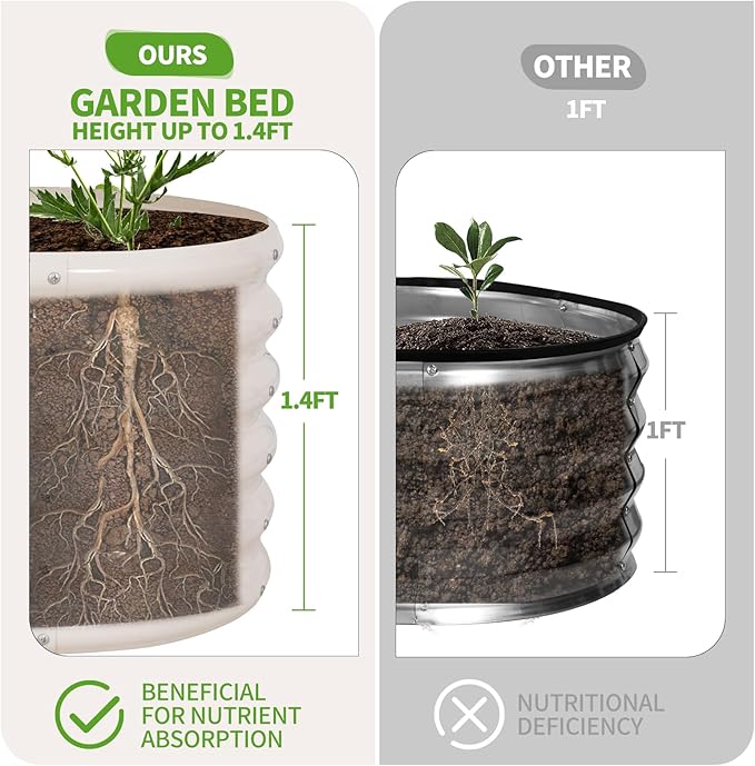 - 【Upgrade Quality & Structure 】The raised garden bed is made of thick galvanized metal with a surface spray coating, which is rust proof and anti-corrosion. Can be used for a long time. The oval design ensures uniform surface force and prevents deformation. More durable than other raised planter box, becoming a good helper for your garden