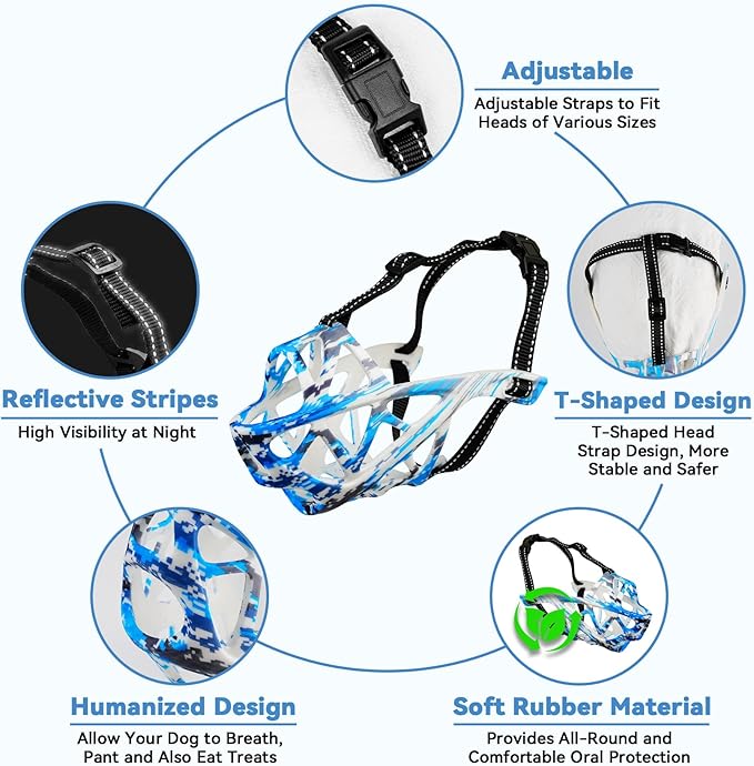 Dog Muzzle for Large Dogs, Breathable Basket Muzzles for Small, Medium and X-Large Aggressive Dog, Allows Panting Drinking, Suitable for Grooming Trimming Training (Camouflage Blue, S)