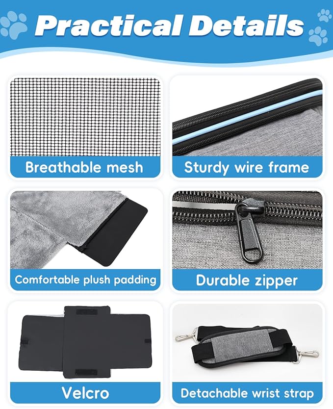 Expandable Travel Pet Bag, Scratch-Resistant Breathable Mesh, Crossbody&Tote Design, Durable&Spacious, Pet Carrier with High-Visibility Windows, Easy-Cleaning Fabric, Removable Soft Pad&Shoulder Strap