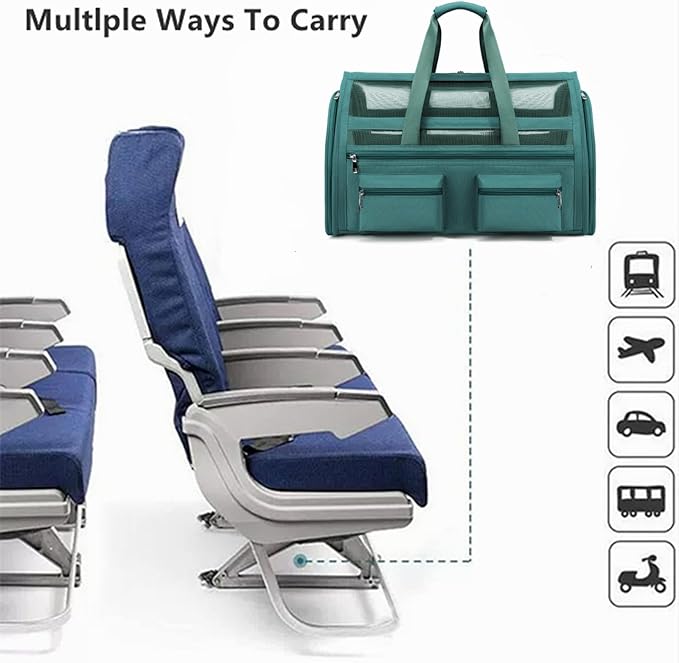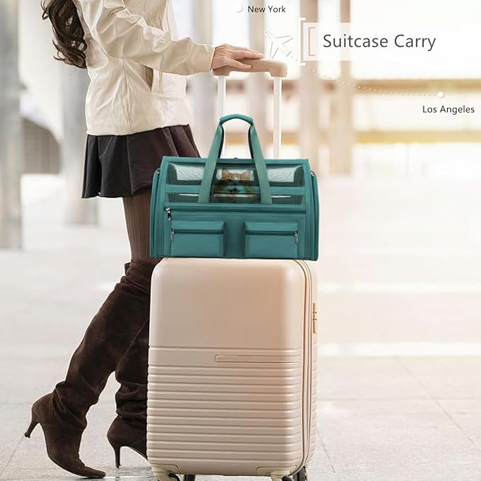 - [AIRLINE APPROVED] This cat carrier is designed with airline approved, it can fit comfortably under most flight seats, we can take our pets wherever we want. Dog travel carrier offers two attachment loop handles that can be used as a dual harness or as a luggage strap for balanced carry and secure transport.