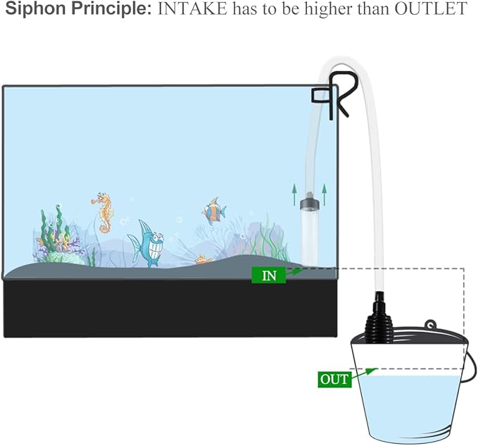 - FUNCTION --- Easy to control, convenient to siphon fish faeces, impurities, turbid water out of fish tank.