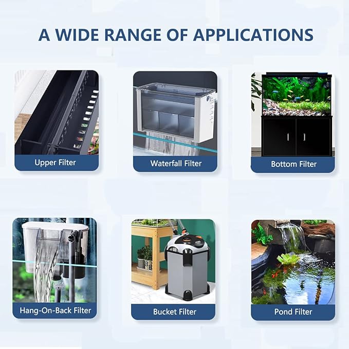 - EASY TO USE- Our aquarium filter media allows you to cut to fit any size filtration. Pads can be used in hang-on-back filters, canister filters, wet or dry filters, sumps, and pond filters. Perfect for freshwater tank, sea water tank, reef aquariums, fish tanks, shrimp tanks, aquaponics systems, turtle tanks, terrariums, water plants cylinder, and much more.