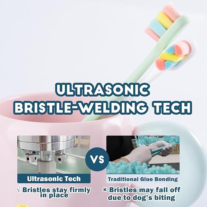 - Ultra Soft: Using upgraded soft toothbrush technology, nearly 10,000 micro fine bristles that are thinner than normal soft bristles, the thicknesses of which are around 120ฮผm, perfect for pets who are new to brushing or have sensitive teeth, this dog tooth brush delivers a swift yet thorough clean, making oral care a breeze, your pet will love the gentle touch!