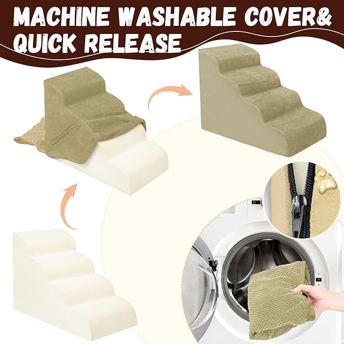 - Double Sided Anti Slip: The dog steps cover is made of corduroy with greater friction than other fabrics, which provides extra grip while in use, the bottom features nonslip rubber dots, preventing pets from sliding while climbing, providing pets with double safety protection