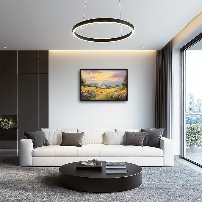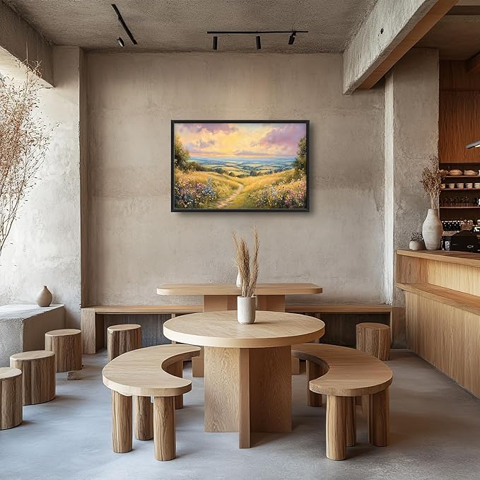 Framed Large Rustic Wall Art for Living Room, Oversized Farmhouse Countryside Nature Landscape Wall Decor Wildflower Field Canvas Painting Floral Pictures Modern Artwork for Bedroom Office 36"x24"