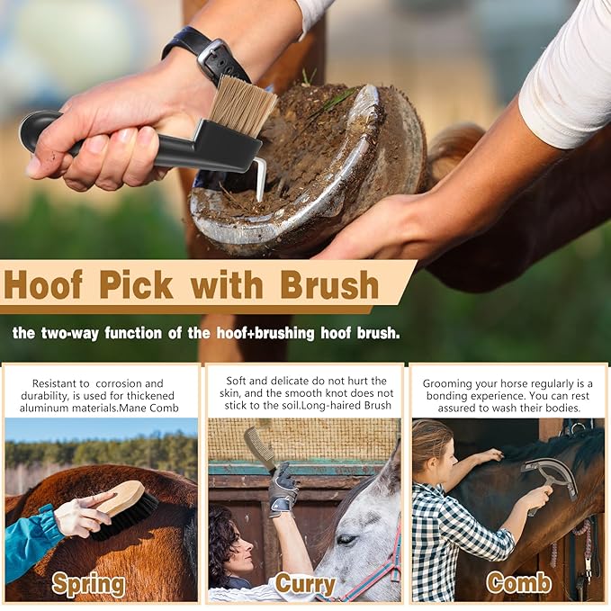 - Practical Gift: these horse grooming tools are suitable for horse groomers, equestrian enthusiasts, beginner riders, stable owners; This horse brush set is a great addition to rider's tack room, or as a gift for that loving horse in your home; You can give this horse grooming kit as a gift to your friends especially those are stable owners, and they will be happy to receive this thoughtful gift
