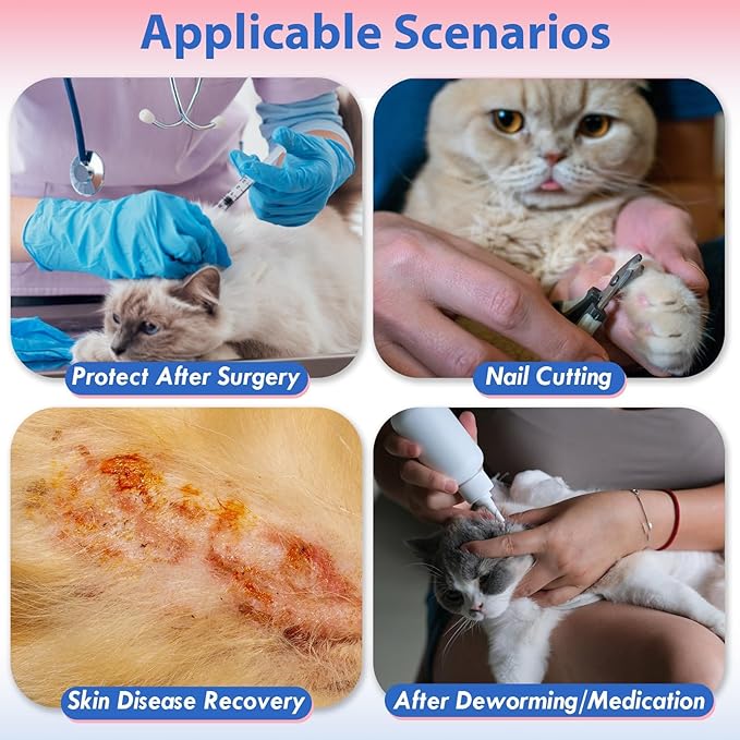 - Applicable for multiple scenarios: Size M: Neck Girth 7.5-9''(19-23cm). This collar is suitable for pet wound recovery, dermatology, deworming, nail clipping and other life scenarios, suitable for cats of different life stages