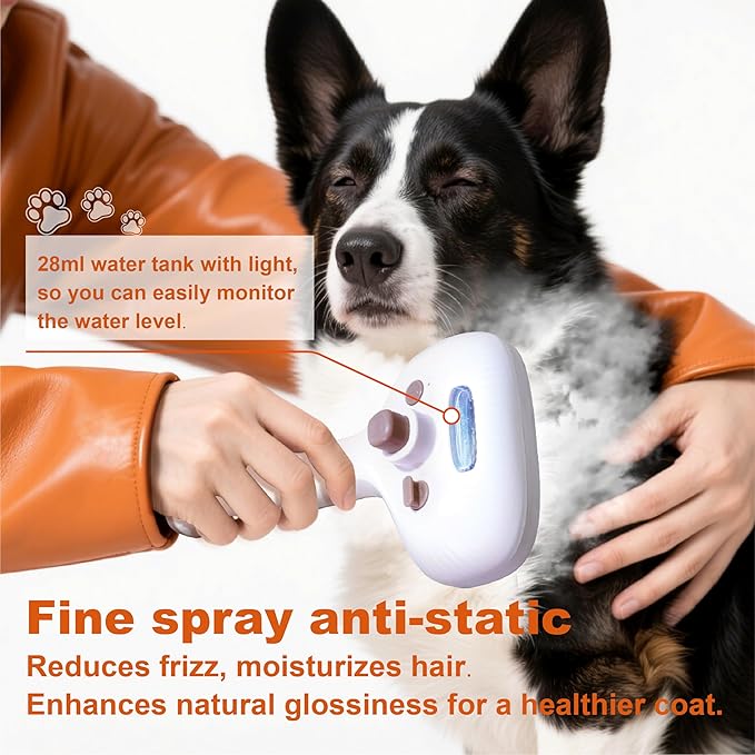 - Universal for All Coat Types: Suitable for all long/short-haired cats & dogs, any size. Our grooming brush—perfect for cat brushes for indoor cats and dog brush for short/long haired dogs—features 30dB quiet operation to reduce pet stress. Delivers gentle mist (not heated steam) – add warm water/fragrance for a customized, calming groom.