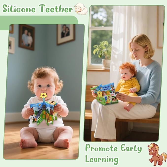 - EARLY EDUCATIONAL TOYS: Farm animal figurines can improve children fine motor skills and finger dexterity. The soft pages will make a rustling sound, and when the top is pressed, the little horse will make a squeaking sound. Each page contains various bright and vivid colors, which is good for both auditory and visual stimulation to encourage the baby's visual development and color recognition ability.