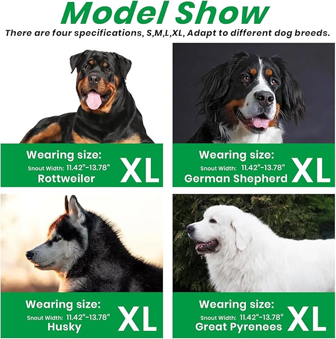 - PLEASE MEASURE BEFORE BUYING:Measure both snout circumference and snout length before purchasing. If your dog's snout length exceeds the size range by about 1 inch, choose the next size up. For long-snout breeds like Dobermans, make sure the snout length fits as well.