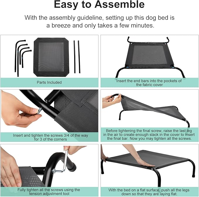 - Easy Maintenance: featuring a washable and breathable mesh cover, our Elevated Dog Bed Cot is easy to clean and maintain. Keep your pet's sleeping area fresh and hygienic with minimal effort.