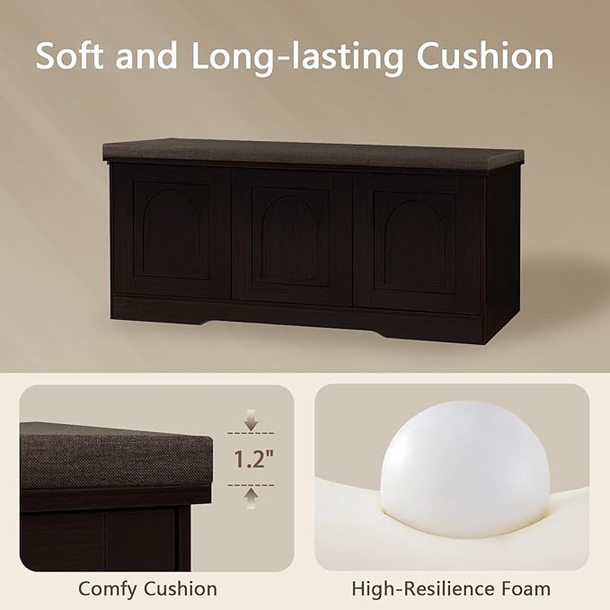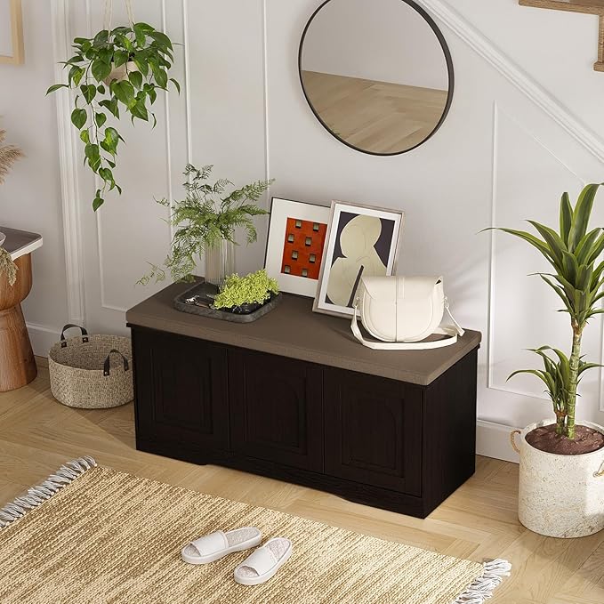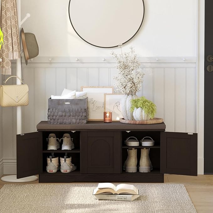 - 【Effortless Push-to-open Door】Feature a fully enclosed design with a press-to-open mechanism, keeping shoes clean and tidy while avoiding accidental bumps against door handles during use. Reasonable height and soft cushion let you change shoes by sitting on the bench more comfortable without bending down or squatting