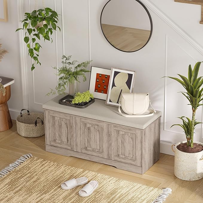 - 【Effortless Push-to-open Door】Feature a fully enclosed design with a press-to-open mechanism, keeping shoes clean and tidy while avoiding accidental bumps against door handles during use. Reasonable height and soft cushion let you change shoes by sitting on the bench more comfortable without bending down or squatting
