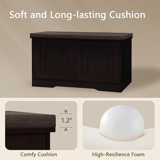 - 【Effortless Push-to-open Door 】Feature a fully enclosed design with a push-to-open mechanism, keeping shoes clean and tidy while avoiding accidental bumps against door handles during use. Reasonable height and soft cushion let you change shoes by sitting on the bench more comfortable without bending down or squatting