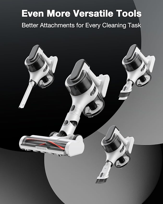 - Special Feature : Cordless Vacuum Cleaner โฆ 2025-upgraded motor with 20KPa suction โฆ Up to 55 mins runtime โฆ Wall-mount storage โฆ Adjustable extension tube โฆ DeepReach Roller Brush โฆ HEPA filtration โฆ 1L dust cup โฆ Green LED lights โฆ 70dB quiet mode โฆ Lightweight & multi-functional โฆ 12-month protection & 24/7 support Cordless Vacuum Cleaner โฆ 2025-upgraded motor with 20KPa suction โฆ Up to 55 mins runtime โฆ Wall-mount storage โฆ Adjustable exโฆ See more