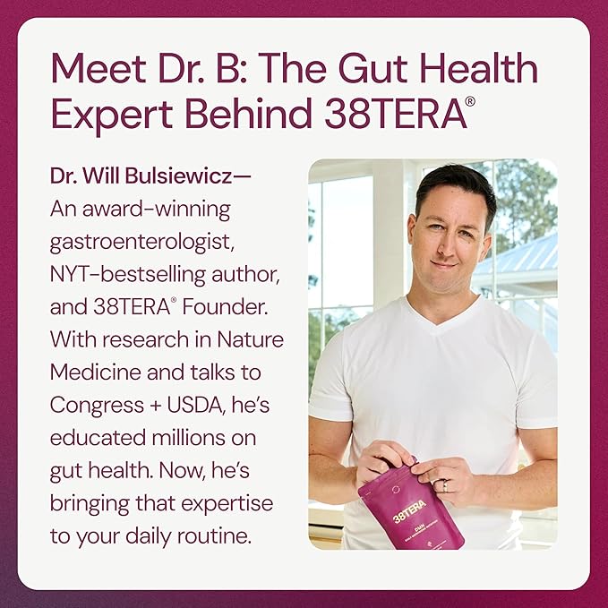 - Your Daily Microbiome Nutrition: Developed by Dr. Will Bulsiewicz, 38TERA DMN prebiotic fiber powder supports digestive health & bowel regularity with 3 types of prebiotics that fuel gut bacteria like Akkermansia, Bifidobacteria, and Faecalibacterium