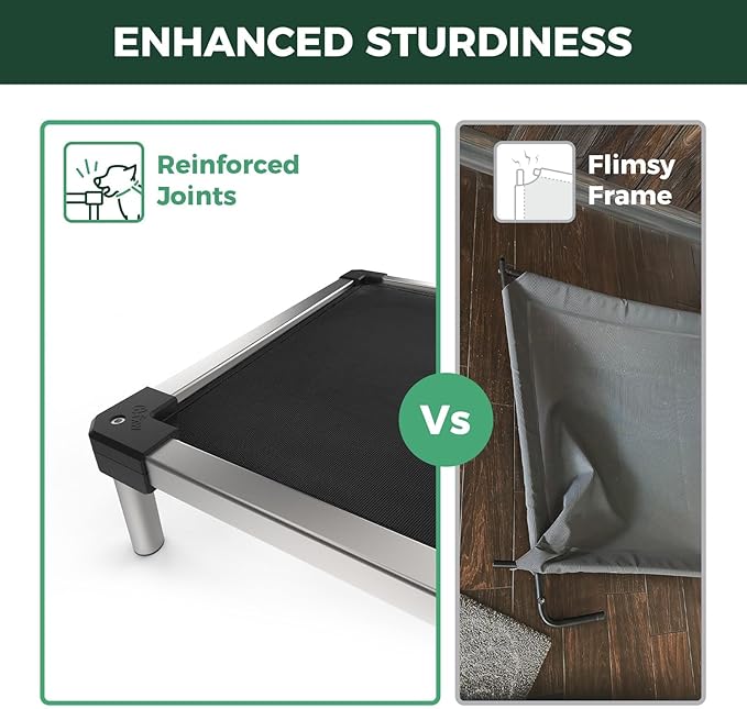 - Indestructible & Dog-Safe: Crafted with a premium aluminum alloy frame and chew-proof edges, this bed withstands aggressive chewers while keeping your pupโs gums safe and happy.