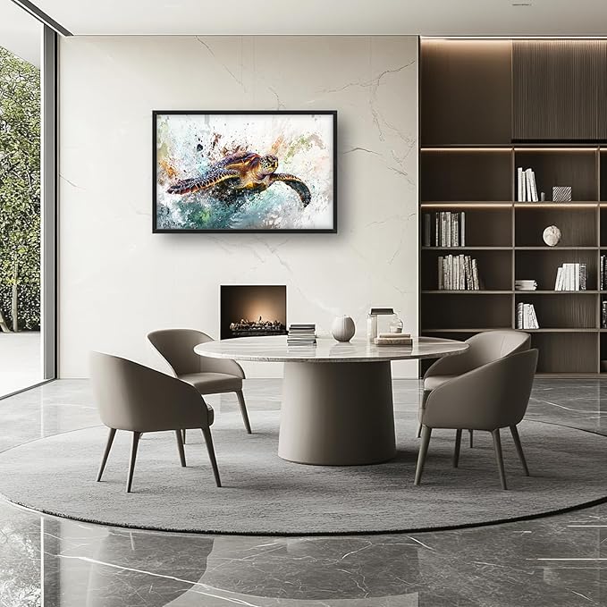 Extra Large Framed Sea Turtle Wall Art,Oversized Abstract Colorful Sea Nautical Wall Decor Pictures for Living Room,Canvas Print Painting Modern Artwork Bedroom Office Bathroom Home Decor 36L x24W