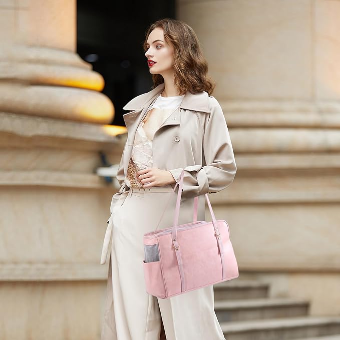 Dog Carrier Purse, Fashion Leather Pet Carrier with Pockets, Airline Approved Soft Sided Dog Carrying Bag for Puppy Cat Dog Pink