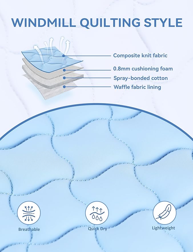 - Non-Slip Stability: Elastic composite fabric surface + 0.8mm high-density sponge interlayer, dual anti-slip technology ensures zero displacement during intense riding; reinforced windmill quilt stitching disperses pressure to prevent fabric deformation.