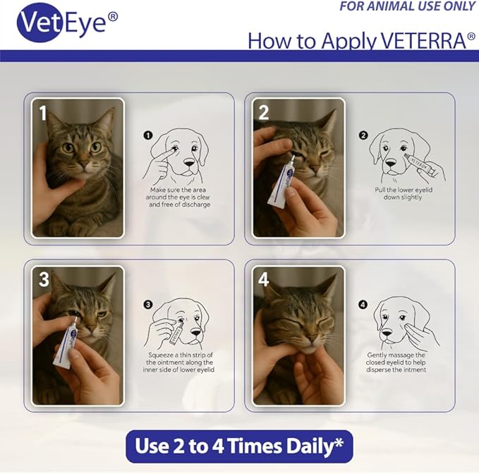 - Easy to administer with no need for separate applicators or accessories. Apply topically to the eye of the animal 2 to 4 times daily as needed