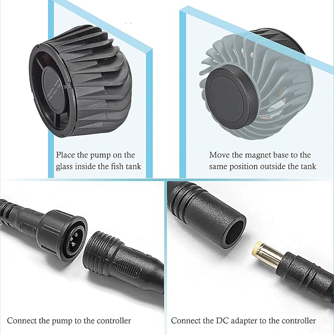 - 【Super strong magnetic force】Can be used for 15cm/6Inch thickness fish tank wall.When installing the wave maker, turn off the power and install it underwater.