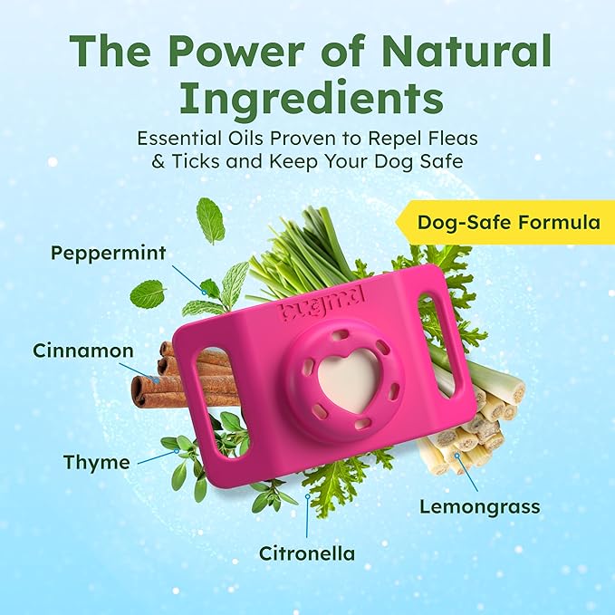 BugMD Paw Guardian Flea & Tick Pendant (2-Pack) with AirTag Holder – Plant-Based Flea & Tick Prevention for Dogs – Pet Collar Tag & GPS Tracker Holder for Dogs – Pink