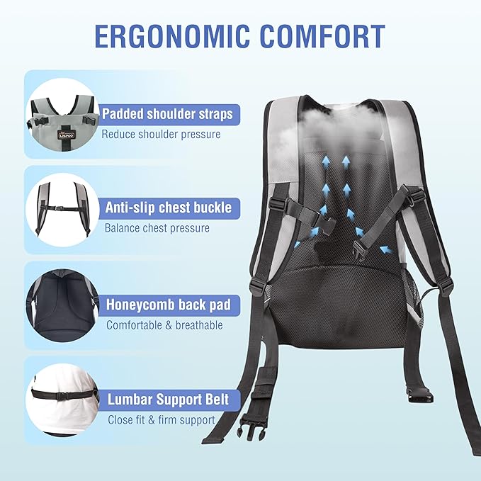 - [Padded Straps for All-Day Comfort] No sore shoulders here! Our ergonomic backpack features a cushioned waist belt, chest buckle, and breathable mesh straps to evenly distribute weight. The modular frame supports your back. Perfect for long walks, shopping, or adventures—keep your pet close without the strain.