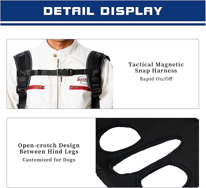 - 【Versatile Use for Large Dogs】 Specifically designed for larger senior pets, those with arthritis, hip dysplasia, or recovering from injury. This carrier provides essential support and joint relief, reducing strain during movement. The secure padded nest keeps your beloved companion close, minimizing anxiety while offering a stable, comfortable way for them to stay mobile and explore the world safely with you.