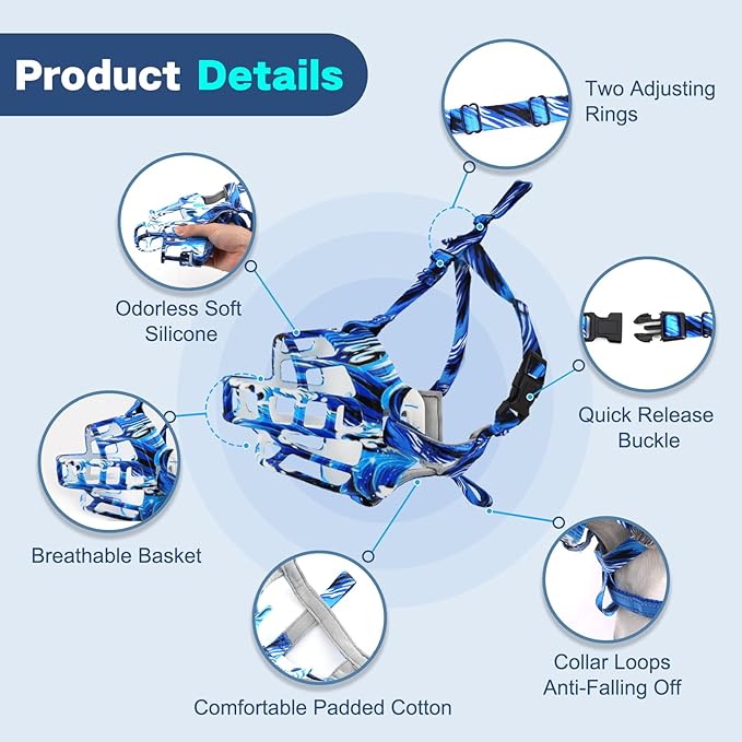 Basket Muzzle to Prevent Biting, Dog Muzzle for Large Medium Small Dogs Allows Panting Drinking Anti Chewing, Perfect for Grooming Trimming Training and Aggressive Reactive Dogs (Blue, Size 1)