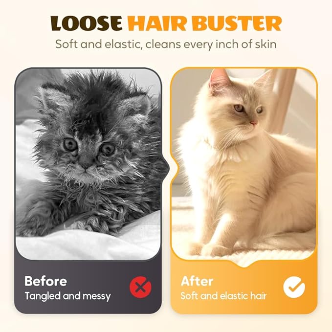 - 【Safe and Skin-Friendly Design】Crafted from high-quality silicone, our cat grooming gloves are designed to safely remove dead skin and loose fur while protecting your pet’s delicate skin. Use these pet hair removal gloves with conditioner or softener in the spray for added softness and shine to your pet's coat.