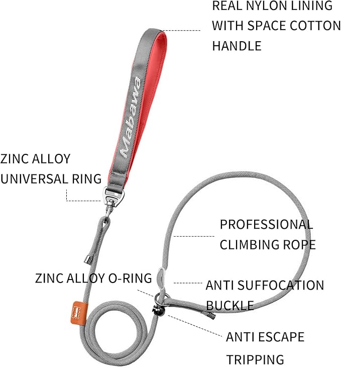- 【Lightweight & Durable】: Slip lead dog leash is made of high-quality climbing grade nylon rope, 0.23 inches (6mm) in diameter, lightweight, durable, wear-resistant, not easy to break and twist, it can withstand strong pulling force. The dog stop pulling leash has 1 zinc alloy O-ring, which can be used to hang dog walking accessories.