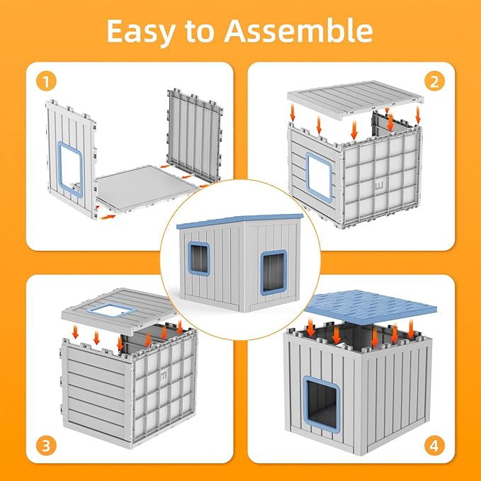 - Elevated Floor & Easy to Clean:The elevated floor design keeps the dog house away from damp ground, ensuring a dry space. The smooth resin surface is easy to cleanβsimply wipe with a cloth to maintain hygiene, ideal for busy pet owners.