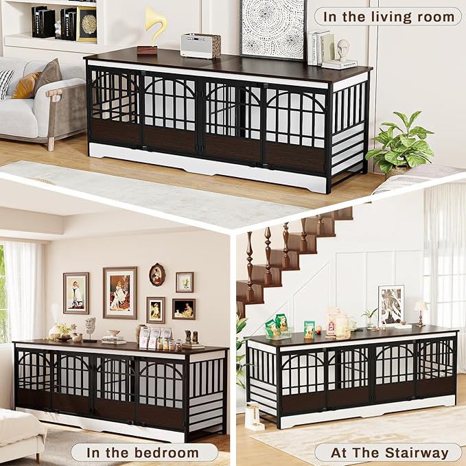 - MULTIFUNCTIONAL DOG CRATE TABLE - The simple retro shape of this dog crate can perfectly fit into various home styles, and the flat surface of the top can be used to place a TV, dog food or storage items. The extra-large size ensures space for your dog to move around without taking up too much room.