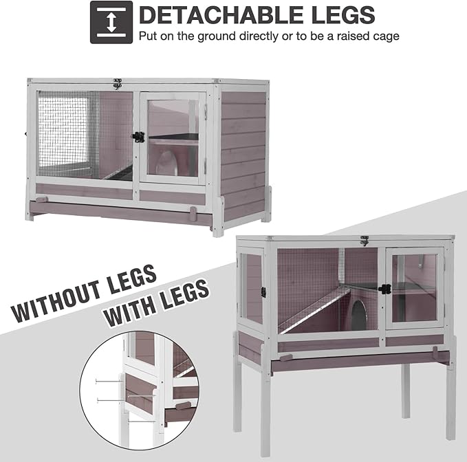 - ADJUSTABLE AND REMOVABLE LEGS Comes with sturdy, removable legs for versatile placement. Use as a free-standing bunny cage or on a flat surface