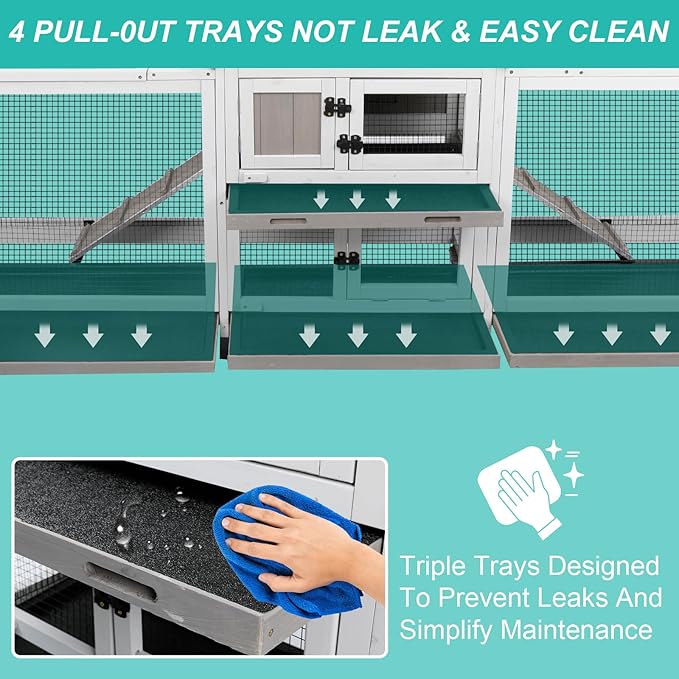 - 【Spacious Dual-Run Design】This upgraded version features an extended layout with an additional run on the left side, providing extra space for rabbits, guinea pigs, and other small animals to explore, exercise, and rest